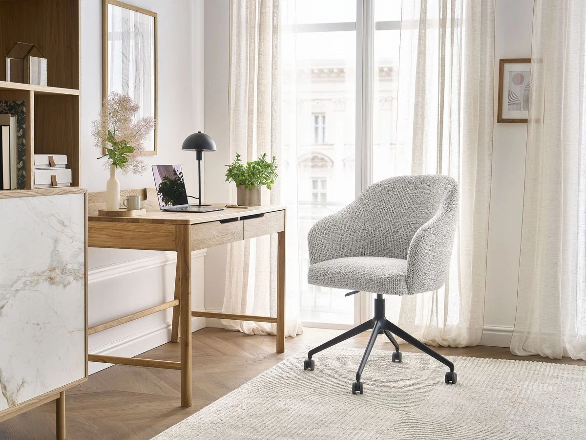 Bobochic Chaise de bureau SOPHIE tissu chiné et pietement à roulettes avec hauteur ajustable
