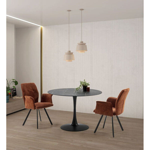 Bobochic Table à manger ronde D.110 cm ARMELLE plateau effet marbre et pied tulipe