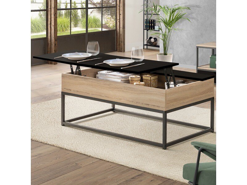 IDMarket Table basse plateau relevable noir rectangulaire boston design industriel