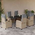 vidaXL Matgrupp för trädgården med dynor 7 delar mixbeige konstrotting 3212828