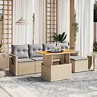 vidaXL Soffgrupp för trädgården med dynor 6 delar beige konstrotting 3271731