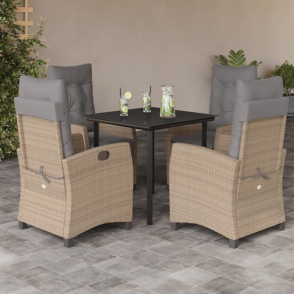 vidaXL Matgrupp för trädgården med dynor 5 delar mixbeige konstrotting 3212834
