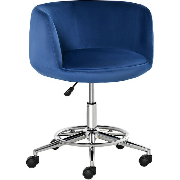 Vinsetto Chaise de bureau ergonomique chromé hauteur réglable pivotante piètement velours revêtement grand confort bleu roi
