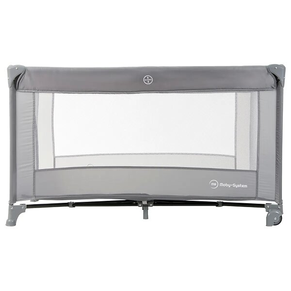 Moby System Lit Parapluie de Voyage Pour Enfants Avec Matelas et Sac de Transport 126 x 66 X 72, Pliable, Roues, Stylo (Gris)