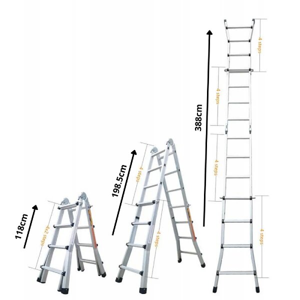 Échelle articulée et télescopique pliante en aluminium 4x4 marches 3,88m SECURY-T
