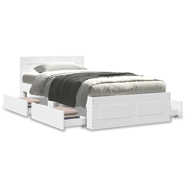 vidaXL Sängram med huvudgavel vit 75x190 cm konstruerad trä 3295618