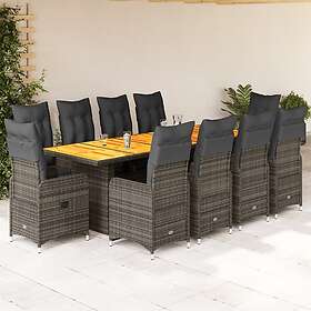 vidaXL Matgrupp för trädgården med dynor 11 delar grå konstrotting 3277294