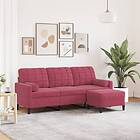 vidaXL 3-sitssoffa med fotstöd vinröd 180 cm sammet 3278271