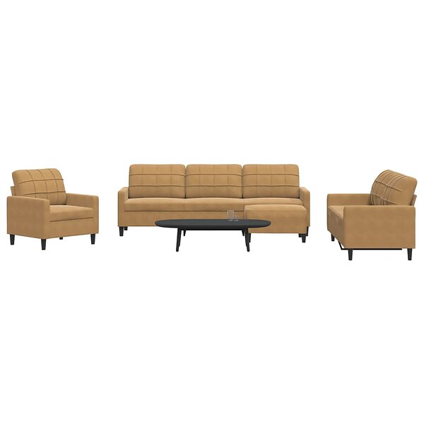 vidaXL Soffgrupp med dynor 4 delar brun sammet 3278448