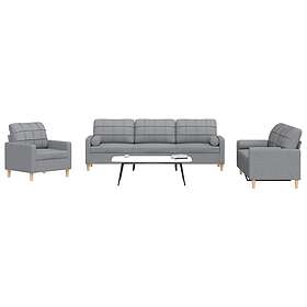 vidaXL Soffgrupp med kuddar 3 delar ljusgrå tyg 3278303