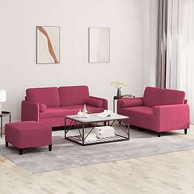 vidaXL Soffgrupp med kuddar 3 delar vinröd sammet 3202008