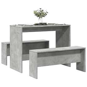 vidaXL Matbord med bänkar 3 delar betonggrå konstruerat trä 855533