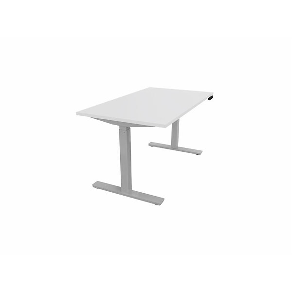 Mateol Bureau droit individuel assis-debout électrique Fusion Gris aluminium LUTZ : bureau P80/ép.25 D140x80/cpl blanc neige/cpi gris