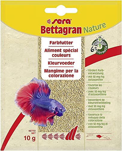 Sera Bettagran Nature 10g – finranulat med 50 mg/kg foder naturligt astaxantin för Betta, fiskfoder för akvarium Salmler, neon och Co.