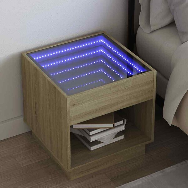vidaXL Sängbord med Infinity LEDs sonoma-ek 50x50x50 cm