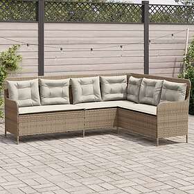 vidaXL Trädgårdssoffa med dynor L-formad beige konstrotting