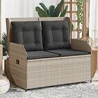 vidaXL Justerbar trädgårdsbänk med dynor ljusgrå konstrotting
