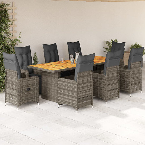 vidaXL Caféset med dynor 9 delar konstrotting grå