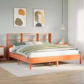 vidaXL Säng med bokhylla utan madrass vaxbrun 180x200cm massiv furu