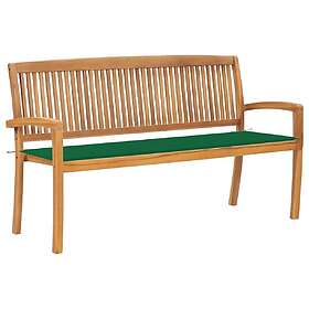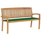 vidaXL Stapelbar trädgårdsbänk med dyna 159 cm massiv teak