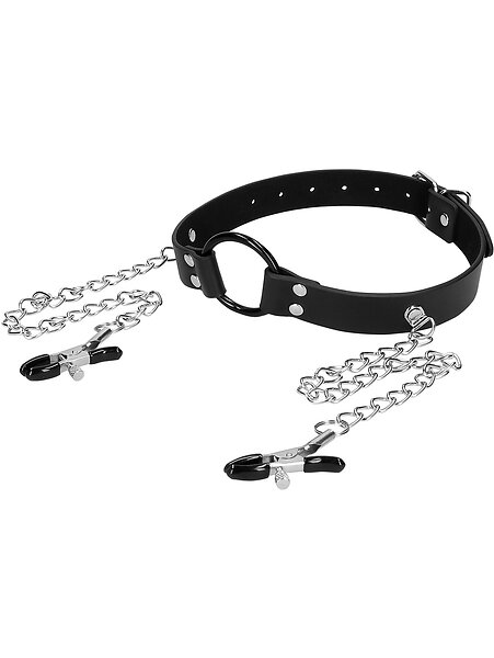 Ouch! O-Ring Gag with Nipple Clamps