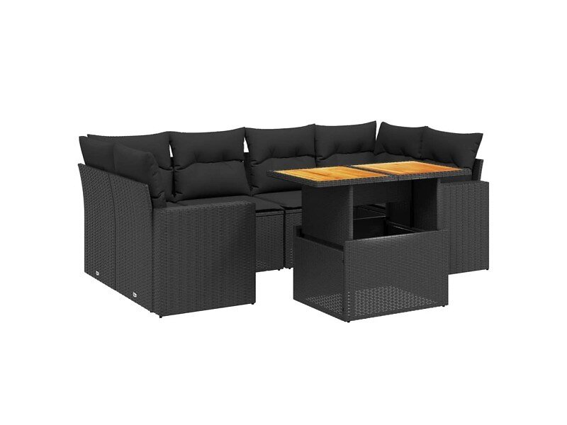 vidaXL Salon de jardin 7 pièces avec coussins noir polyrotin