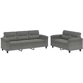 vidaXL Soffgrupp med kuddar 2 delar mörkgrå mikrofibertyg