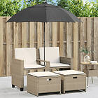 vidaXL Trädgårdssoffa 2-sits med parasoll&pallar beige konstrotting