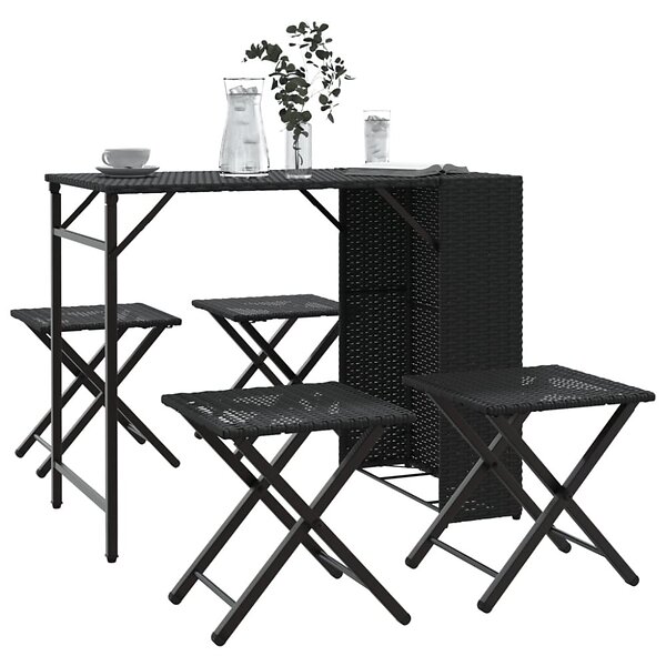 vidaXL Ensemble de salle à manger de jardin pliable 5 pièces noir résine tressée