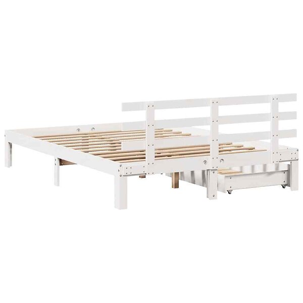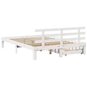 vidaXL Sängram med lådor vit 120x200 cm massiv furu