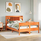 vidaXL Säng med bokhylla utan madrass vaxbrun 140x200cm massiv furu