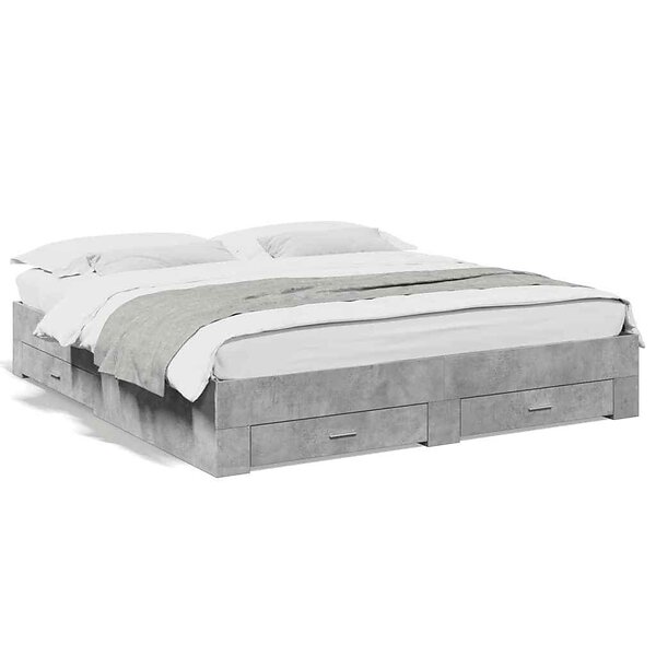vidaXL Sängram med lådor betonggrå 180x200 cm konstruerat trä