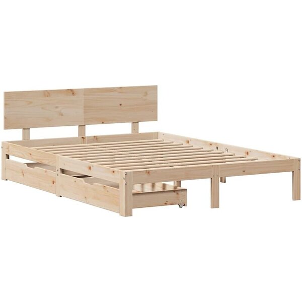 vidaXL Sängram med lådor 140x200 cm massiv furu