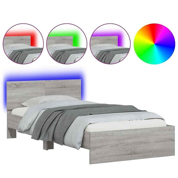 vidaXL Cadre de lit avec tête de lit et LED gris sonoma 100x200 cm