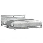vidaXL Sängram med huvudgavel och LED betonggrå 180x200 cm