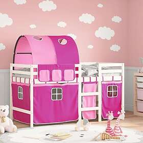 vidaXL Loftsäng med tunnel rosa 90x190 cm massiv furu
