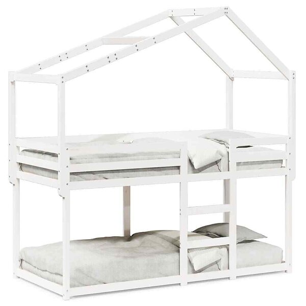 vidaXL Våningssäng med tak vit 90x190 cm massiv furu