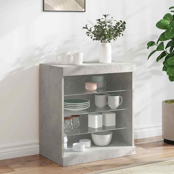 vidaXL Skänk med LED-belysning betonggrå 60,5x37x67 cm