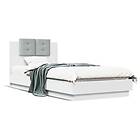 vidaXL Sängram med huvudgavel och LEDs vit 90x200 cm