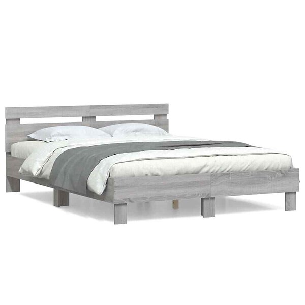 vidaXL Sängram med huvudgavel grå sonoma 140x190 cm konstruerad trä