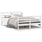 vidaXL Sängram med huvudgavel vit 150x200 cm massiv furu