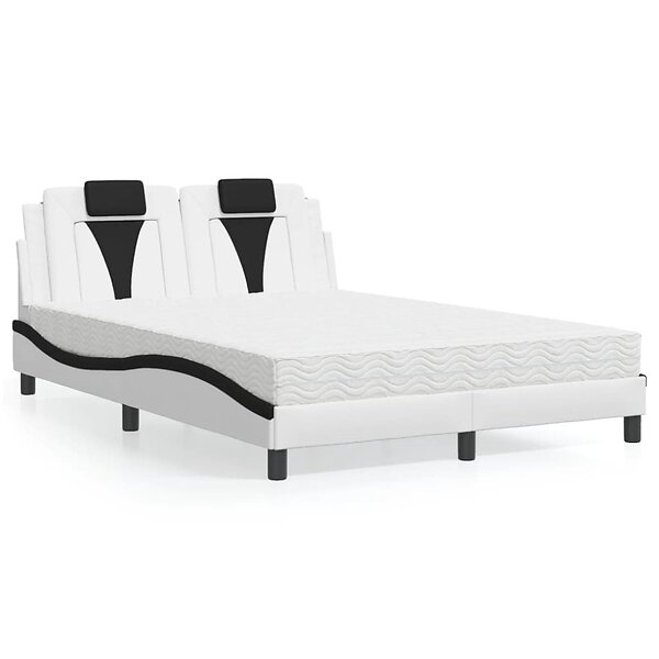 vidaXL Säng med madrass vit och svart 140x200 cm konstläder