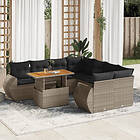 vidaXL Loungegrupp för trädgården m dynor 9 delar grå konstrotting