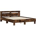 vidaXL Sängram med huvudgavel och LED rökfärgad ek 140x200 cm