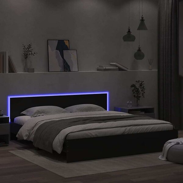 vidaXL Sängram med huvudgavel och LED svart 200x200 cm
