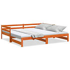 vidaXL Utdragbar dagbädd utan madrass vaxbrun 90x190 cm massivt trä