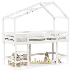 vidaXL Våningssäng med stege och tak vit 90x200 cm massiv furu
