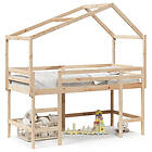 vidaXL Våningssäng med stege och tak 90x190 cm massiv furu