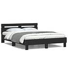 vidaXL Sängram med huvudgavel och LED svart 140x190 cm