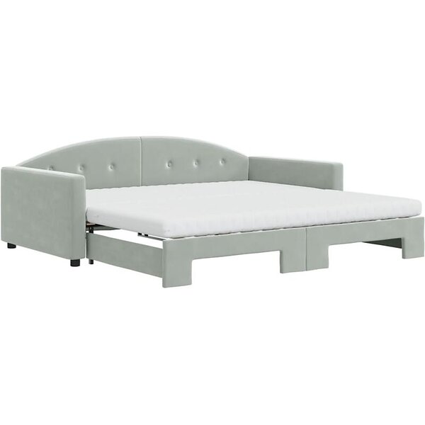 vidaXL Dagbädd utdragbar och madrasser ljusgrå 100x200 cm sammet